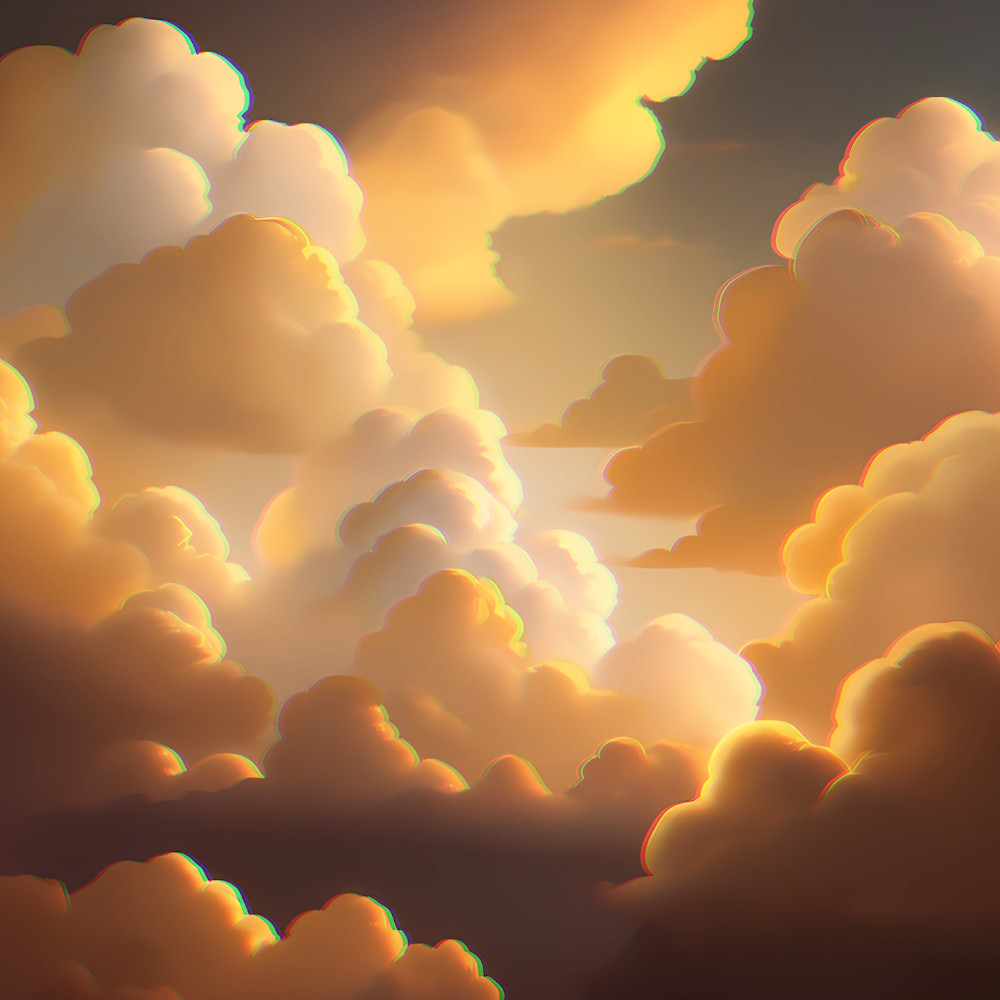 As best as I am able to, I will describe the painting to you now. It is a depiction of a sky filled with fields of clouds, which stretch into the far distance where they are lit by a golden light from somewhere behind. The sense of depth Vidius conveys with his brushstrokes is one that I have not seen paralleled in the work of any other artist. This appears to be achieved partially through the physical construction of the painting, where the canvas has been layered with some other material, which gives the painting not just a depth but a fullness and texture to it. It is like looking into an entire other world that Vidius has built from scratch.